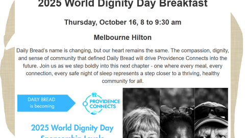 Daily Bread/Providence Place Hosts a Dignity Breakfast October 16, 2025. Jeffery Njus, Executive Director, stresses the importance of communication and how the event will highlight the stories of those who have experienced and overcome challenges.