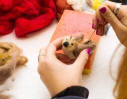 Felting is an ancient technique to create fabric that has been around since at least 6500 BCE! Felt is a non-woven textile made of wool or animal fur. There are different ways to create felt: one is with soap and water, and another is with a felting needle. Regardless of the process, the action of felting binds fibers together creating a permanent bond. What can you make by felting? The possibilities are endless! Maybe a two-dimensional artwork ready to be framed, or a three-dimensional plushy, keychain, or even beads!