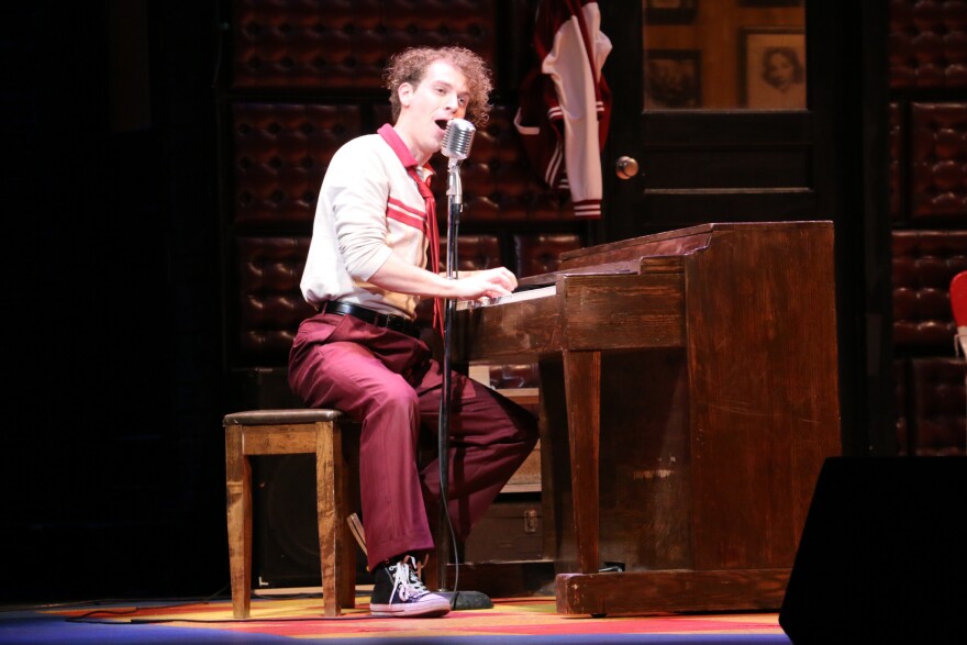A hotshot and wisecracking newcomer, Jerry Lee Lewis has just entered Phillips' orbit. A coiled spring with a mad gleam in his eye, Lewis (Nat Zegree) steals the show as a piano-pounding hellion with an ego as oversized as his sound. Dressed in baggy maroon trousers, high-top Converse All-Star sneakers, and a mop of dirty blonde hair swishing around his face, Lewis uncorks a series of startling acrobatic feats around and over the piano, bench seat and microphone.