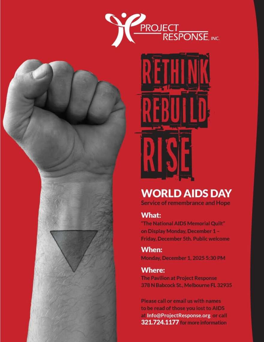 Join us for the World AIDS Day Service with Space Coast AIDS Quilts on display and a service of hope as we remember those lost to AIDS.