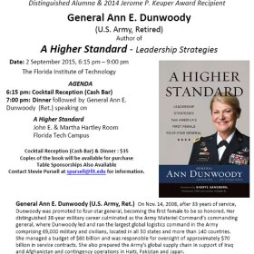 Distinguished FL Tech Alumna & recipient of the 2014 Jerome P. Keuper Award General E. Ann Dunwoody will speak in the Hartley room on the FL Tech campus…