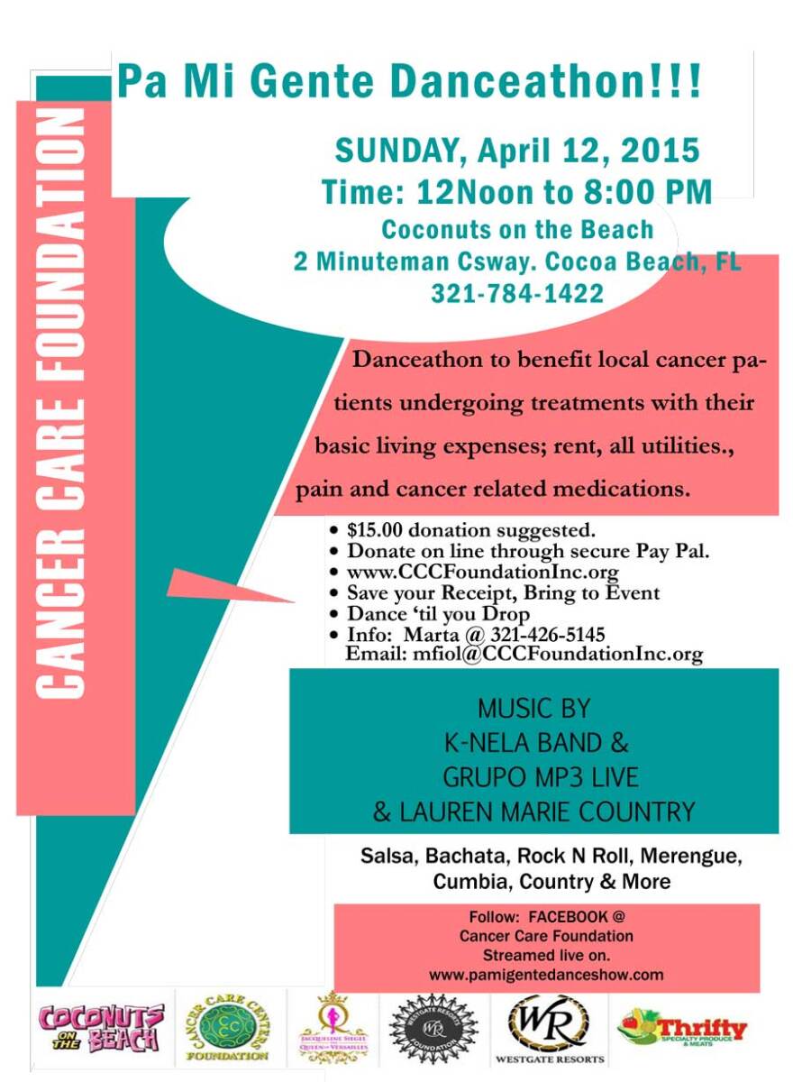 Like to dance? Don't miss out on this great event in support of Cancer Care Centers Foundation! Sunday April 12th from Noon to 8 pm at Coconuts on the Beach. Come and join the Dance-A-Thon with a chance to win great prizes or just come out to watch.