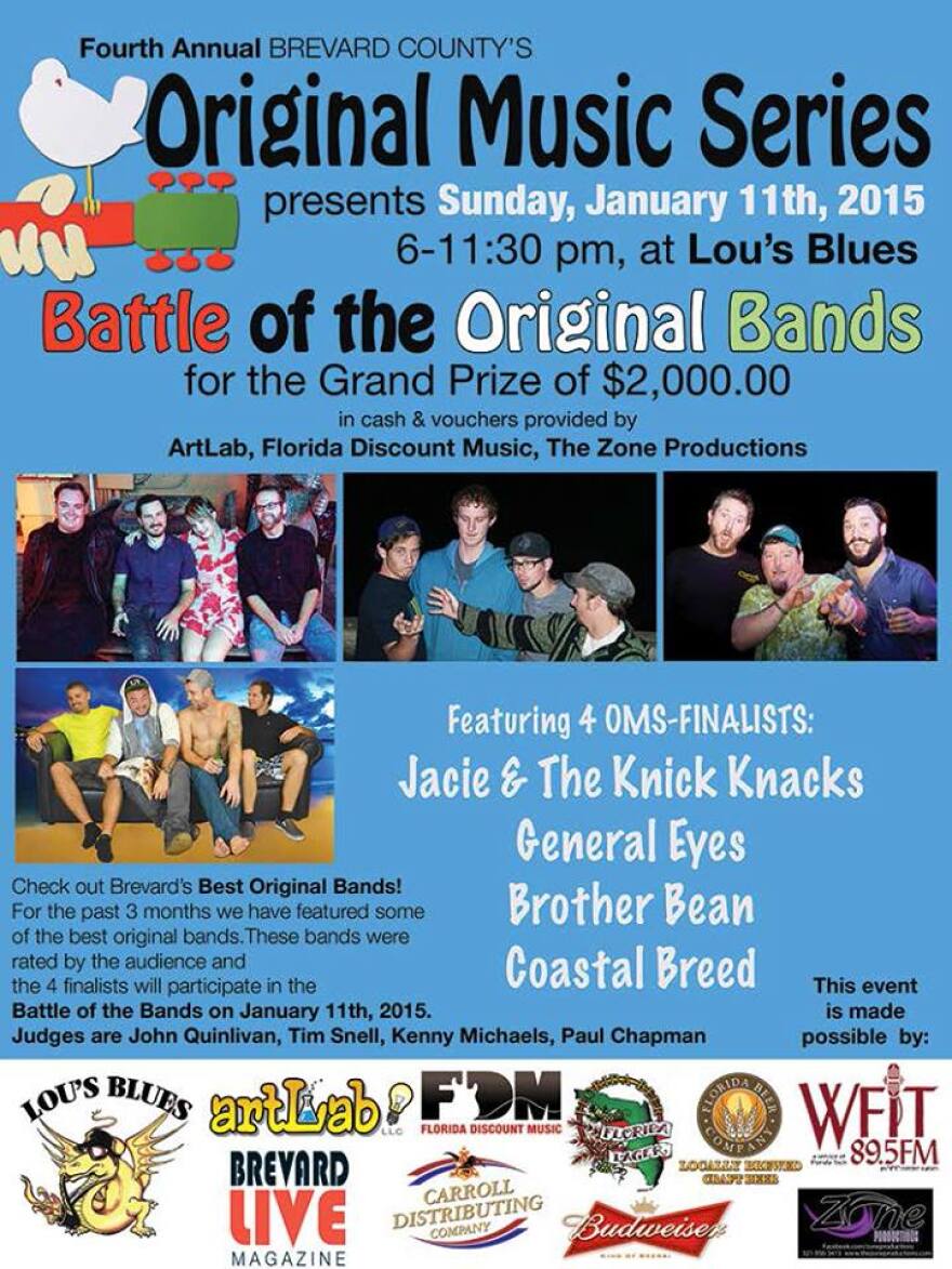 The 4th Annual Brevard County’s Original Music Series Finals takes place this Sunday, January 11th , 6 p.m. at Lou’s Blues, Indialantic.